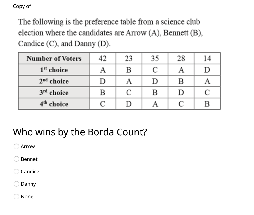 Solved Copy Of The Following Is The Preference Table From A Chegg Com