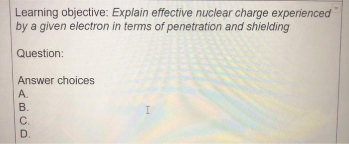 Solved Learning Objective Explain Effective Nuclear Charge Chegg Com